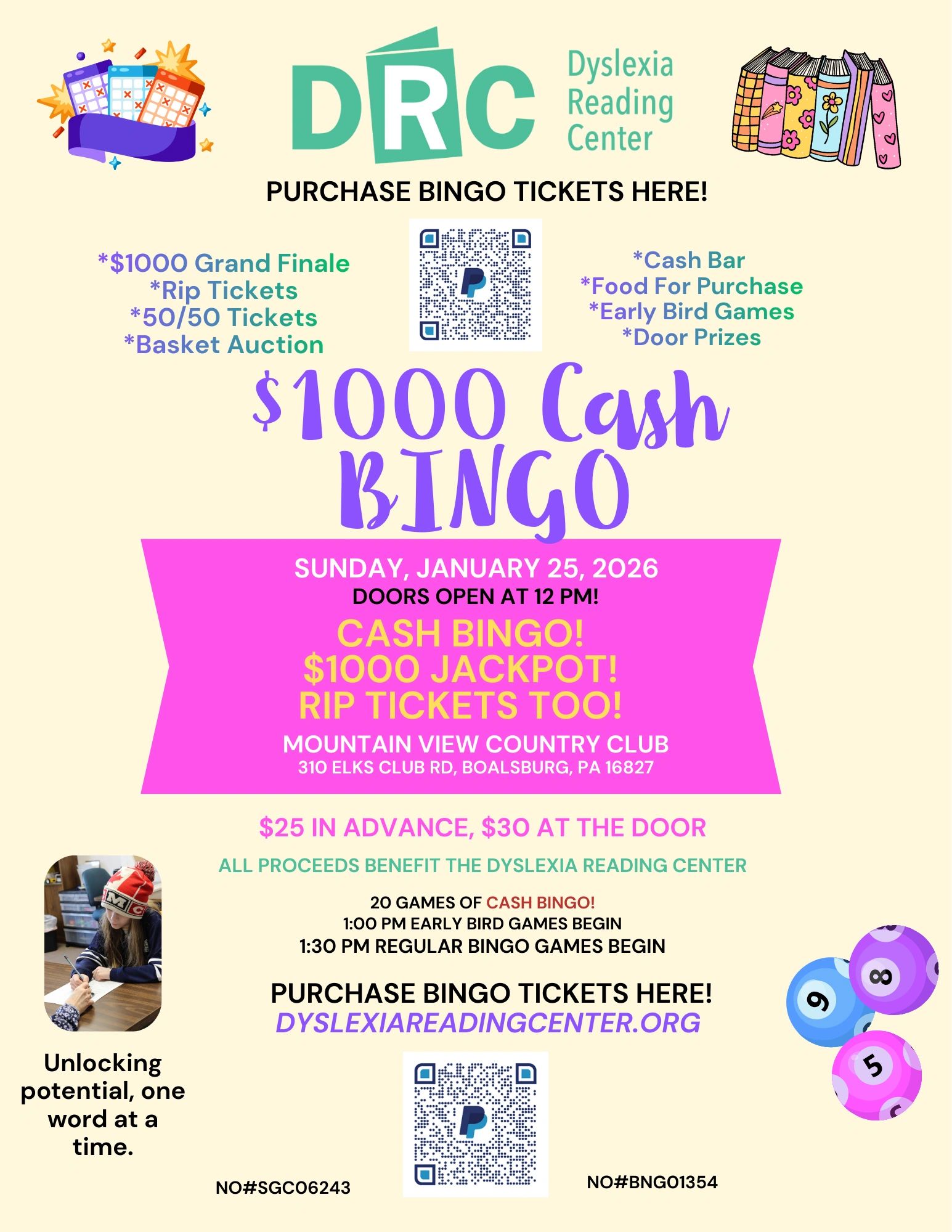 Cash BINGO — $1,000 Final Jackpot! Only 200 tickets available.